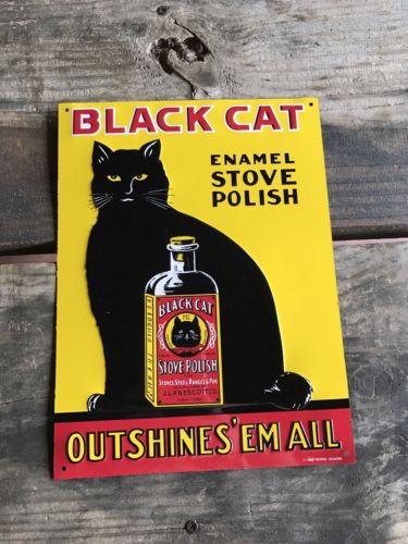 Title (ebay affiliate link): Vintage Black Cat Stove Polish Embossed Metal Advertising Sign Very Nice