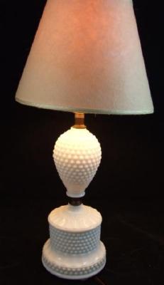 Vintage WHITE MILK GLASS TABLE LAMP Hobnail