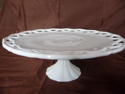 BEAUTIFUL MILK GLASS CAKE PLATE EXCELLENT
