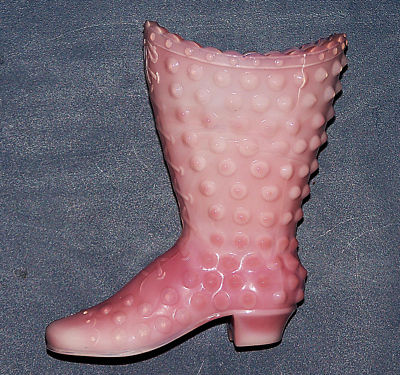Fenton 4" Pink Milk Glass Hobnail Boot Shoe