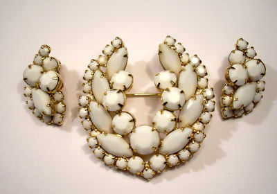 Vtg ELEGANT Milk Glass RHINESTONE Brooch/ER's DEMI