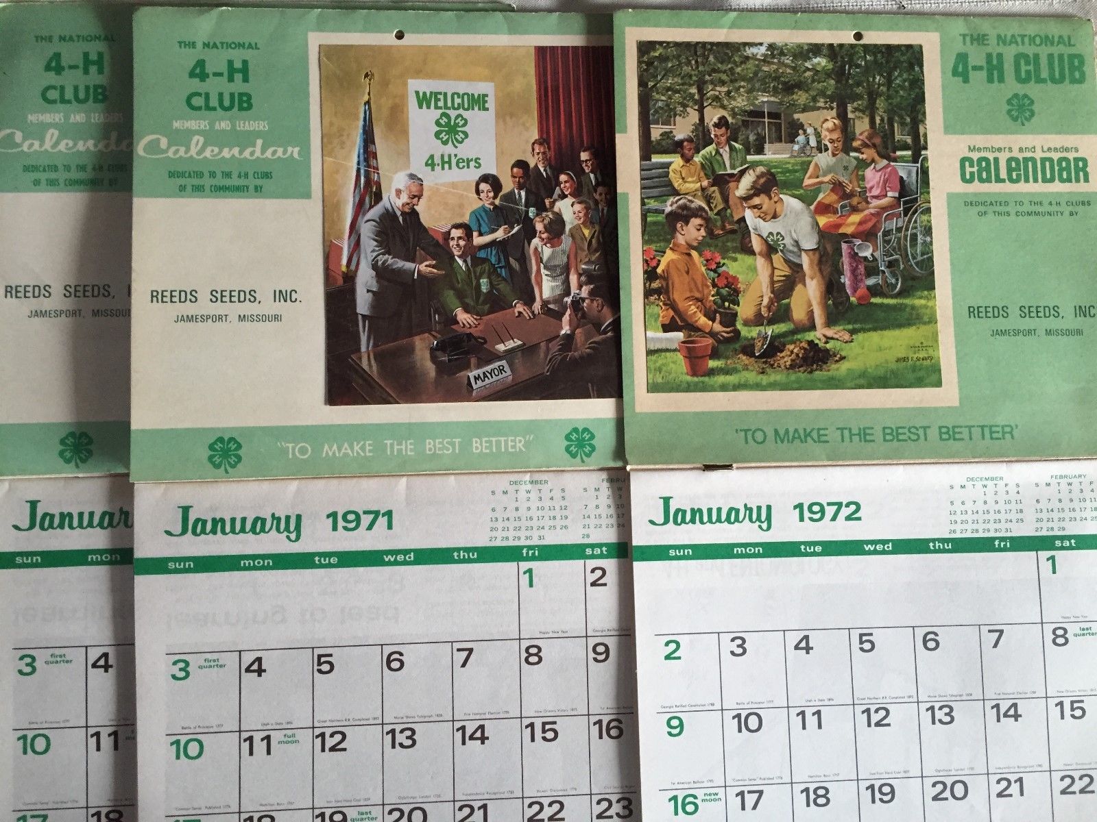 Title (ebay affiliate link): Three 4-H Club Calendars 1971 and 1972 - Reeds Seeds,Jamesport, Missouri