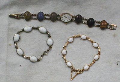 Vintage Milk Glass Stone Scarab Bracelet Watch Lot 3