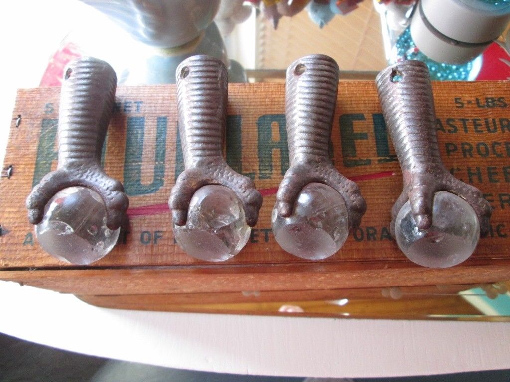 Title (ebay affiliate link): Set 4 Antique Cast Iron Claw Feet with Glass Ball Casters