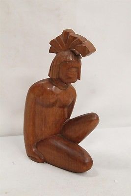 Art Deco J Pinal Wood Carving Mexican Aztec Warrior Kneeling Figurine