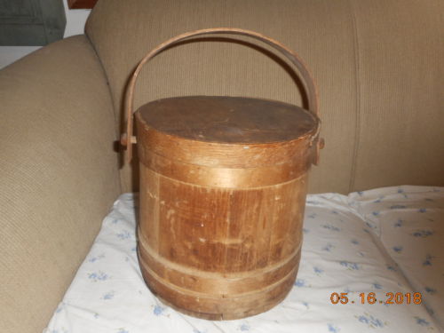 Title (ebay affiliate link): AAFA ANTIQUE PEGGED STAVE WOOD FIRKIN SUGAR BUCKET DRY ATTIC SURFACE