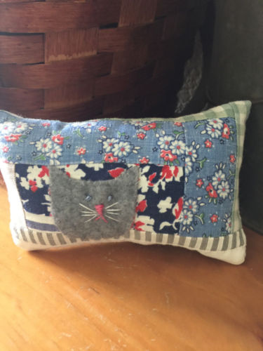 Title (ebay affiliate link): Primitive Stitchery Kitty Cat On A Quilt Ornie Little Pillow Bowl Filler