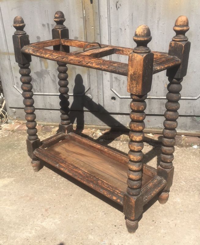 Antique Arts And Crafts Oak Stick Stand