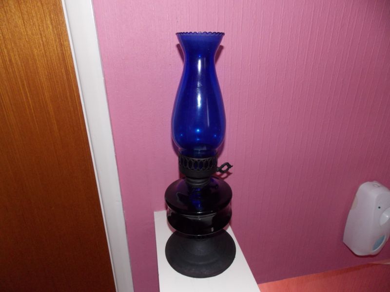 BLUE GLASS OIL LAMP