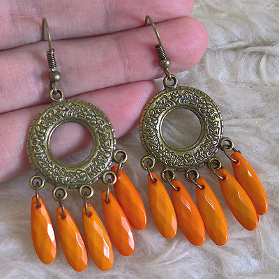 Title (ebay affiliate link): Womens Fashion Antique-Tone Pattern Plate ORANGE Beads Dangle Fall Hook Earrings