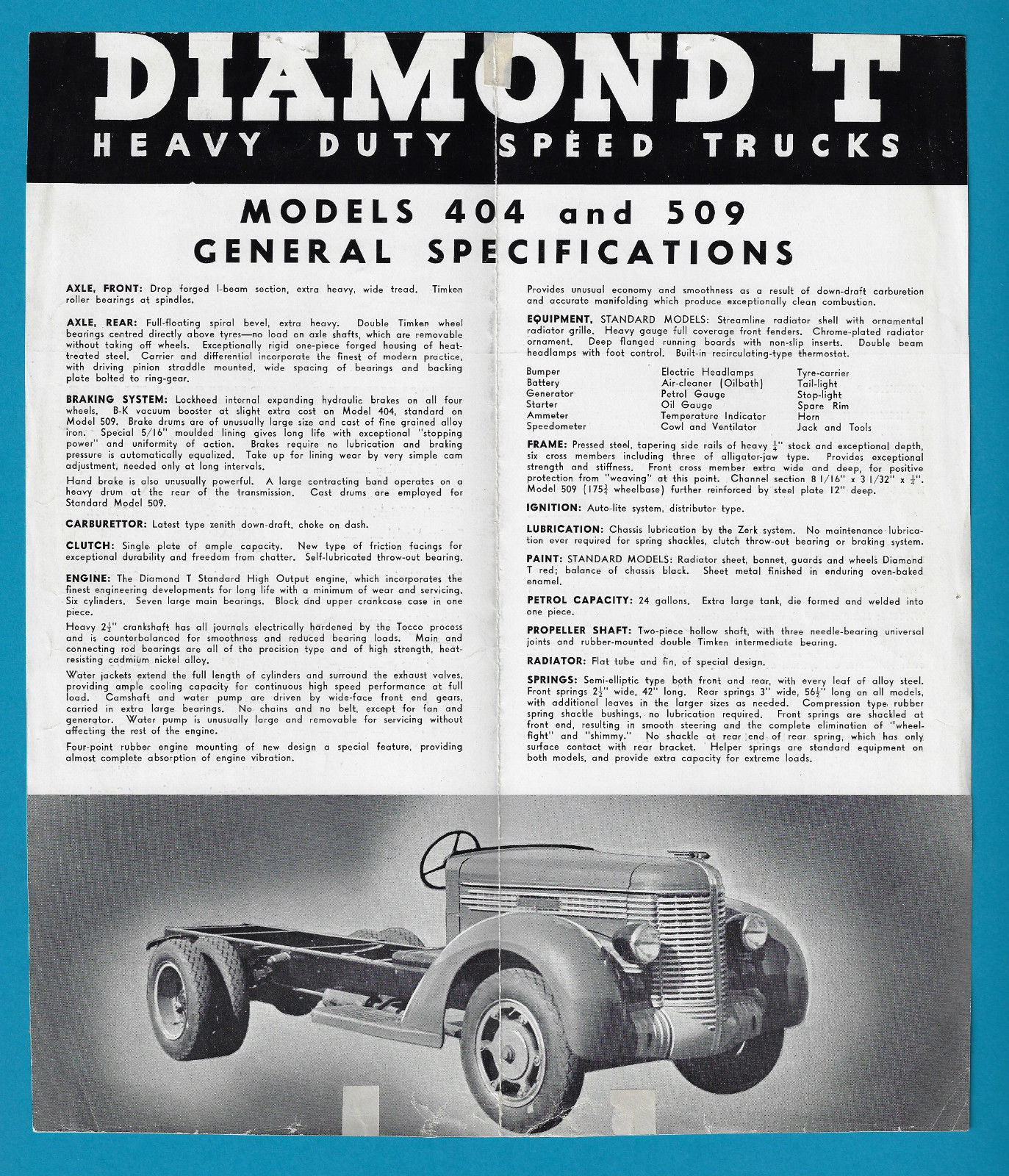 DIAMOND-T TRUCKS MODEL 404 and 509 spec. leaflet 29 x 25cm