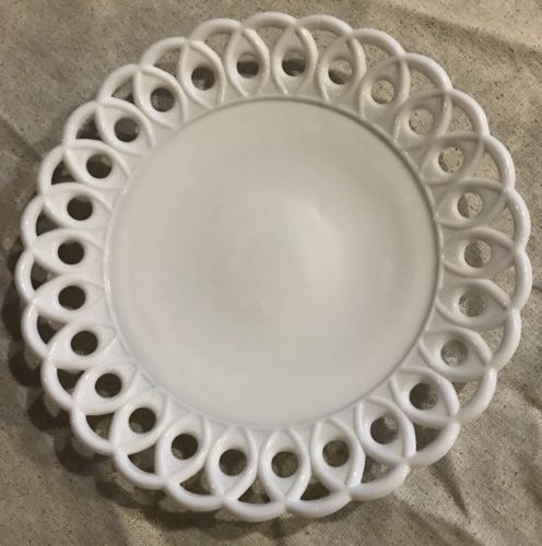 Title (ebay affiliate link): CHALLINOR TAYLOR & CO WHITE MILK GLASS SCROLL & EYE 7 3/4" PLATE 1800''S