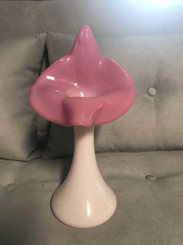 Vintage Fenton Milk Glass & Pink Jack In The Pulpit Vase