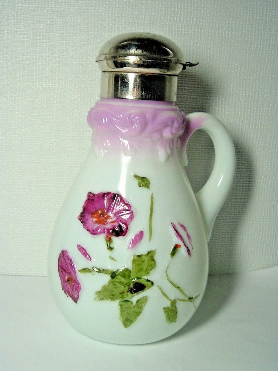EAPG Antique Victorian Milk Glass Syrup Pitcher Fostoria WINTER MORNING GLORY