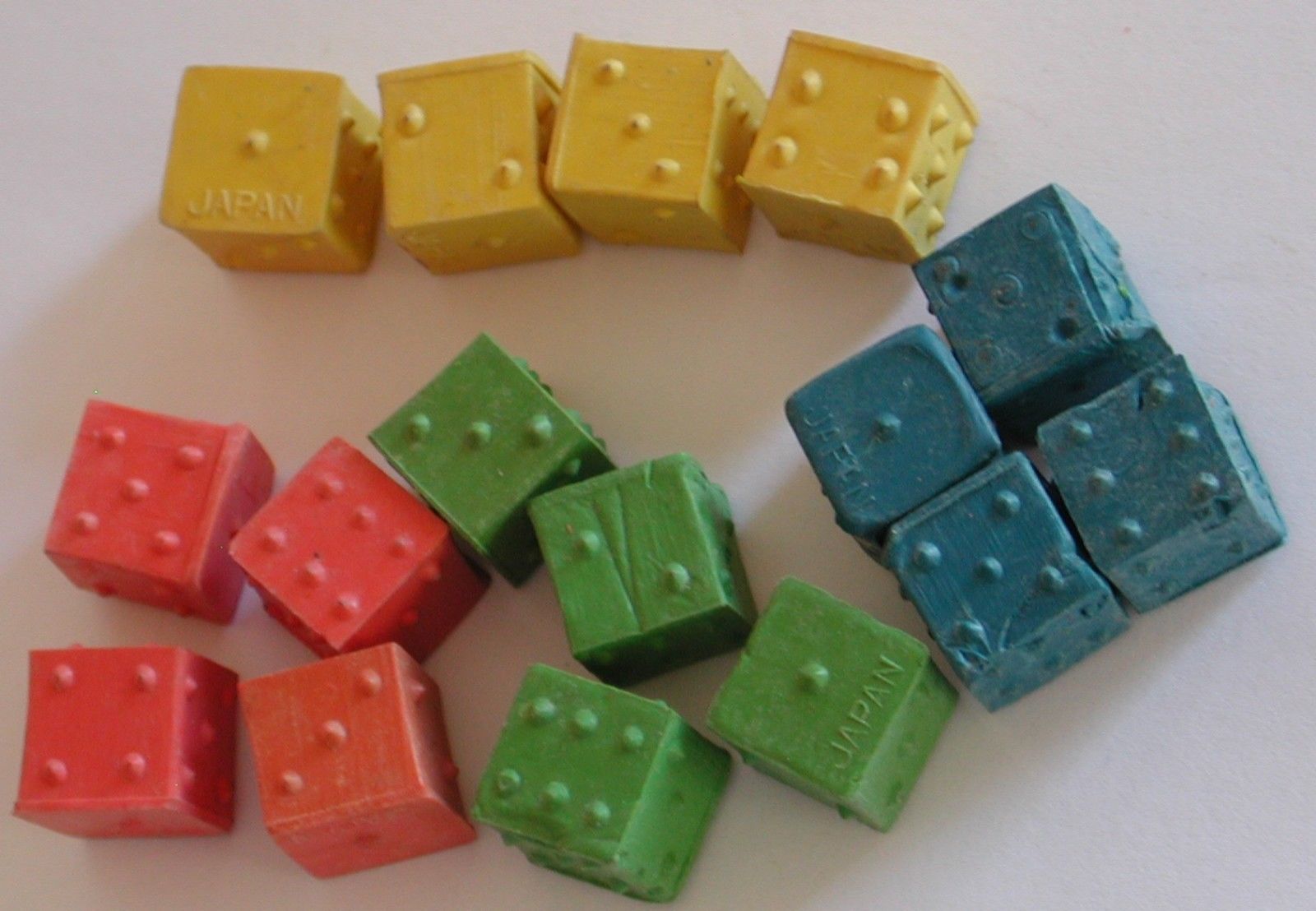 Title (ebay affiliate link): 16 Vintage CRACKER JACK / Gumball Toy Premium Colorful 3/8" JAPAN Rubber Dice
