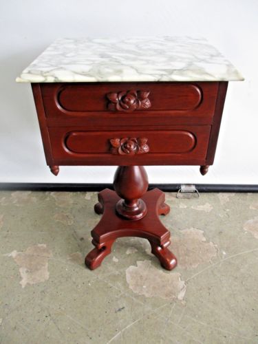 Title (ebay affiliate link): ANTIQUE ROSEWOOD REPRODUCTION SIDE TABLE LAMP TABLE W/ ITALIAN MARBLE TOP & DOU