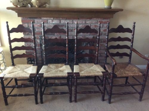 Title (ebay affiliate link): 4 Antique Ladderback Rush Seat Chairs (One Arm Chair and 3 Side Chairs)