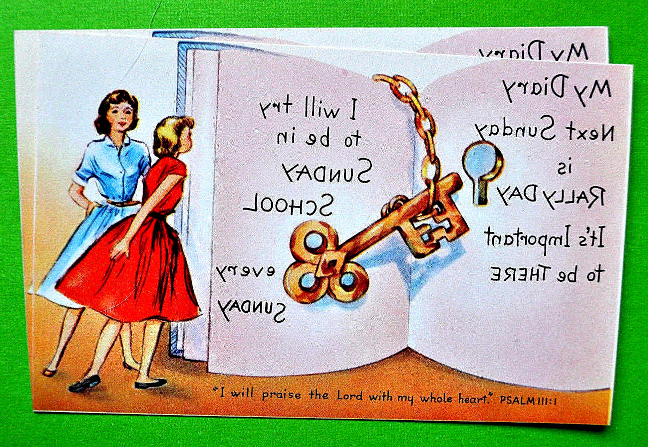 Title (ebay affiliate link): 1950s Teen Girls ~Rally Day ~2 VTG POSTCARDS~ Sunday School Religious CRG Pretty