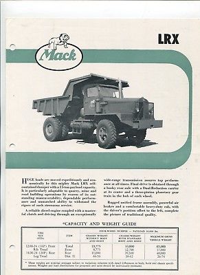 Title (ebay affiliate link): MACK Truck 1958 model LRX 4x2 Dumper Sales Brochure