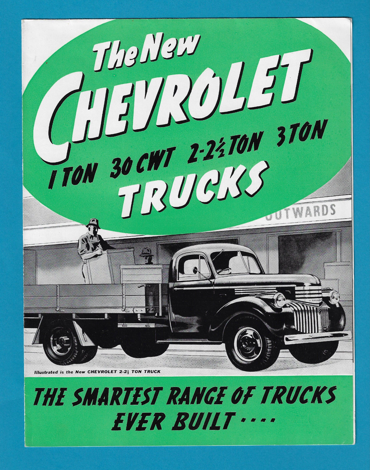 1940s CHEVROLET 1 TON, 30 CWT, 2-2 1/2 TON TRUCKS FOLDOUT BROCHURE 57 X 44cm