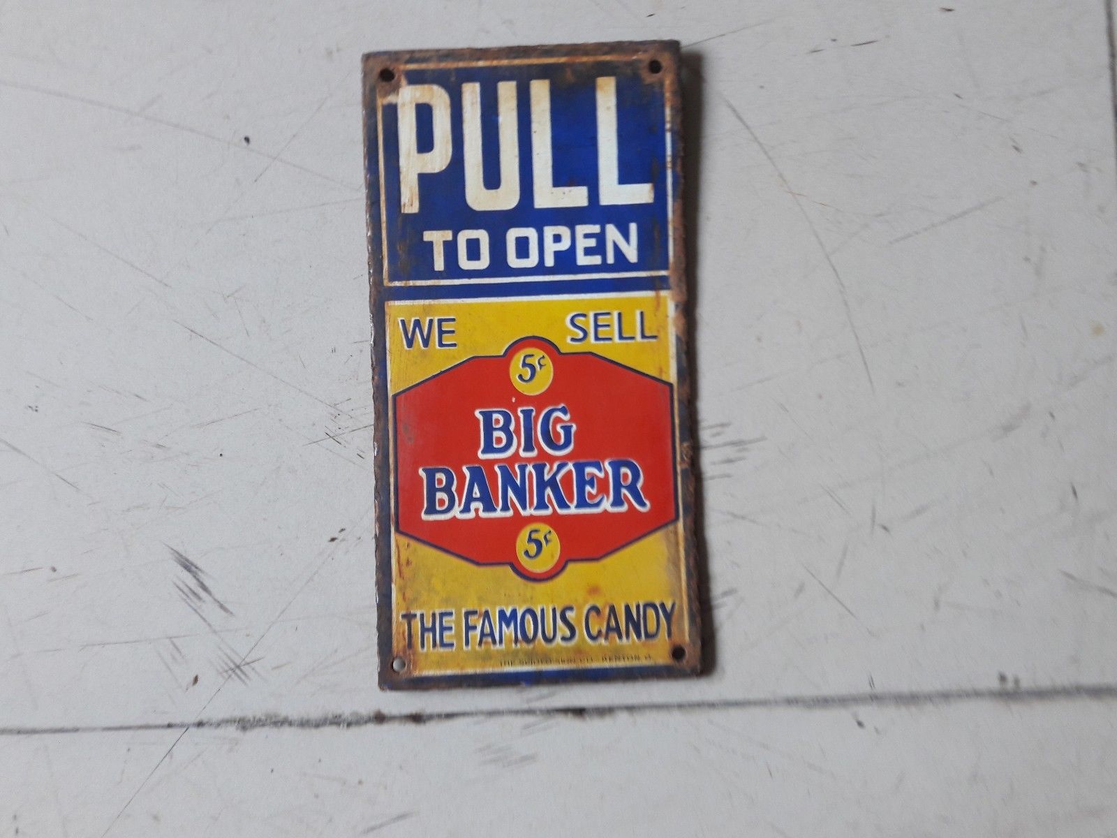 PORCELAIN Pull Big Banker SIGN SIZE 16" x 6" Inches