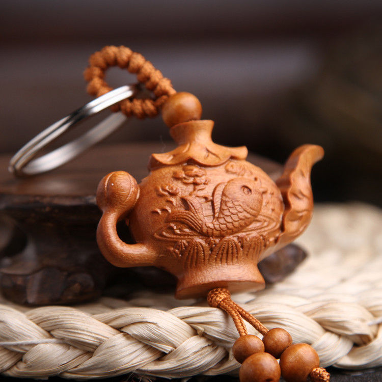 Title (ebay affiliate link): Tea Pot Carp Wood 3D Carving Chinese Fengshui Pendant Key Chain Keyring Craft
