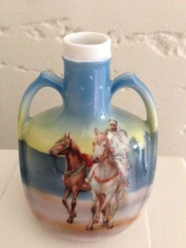 ROYAL BAYREUTH Arab with 2 Horses Small Porcelain Vase, Blue Mark