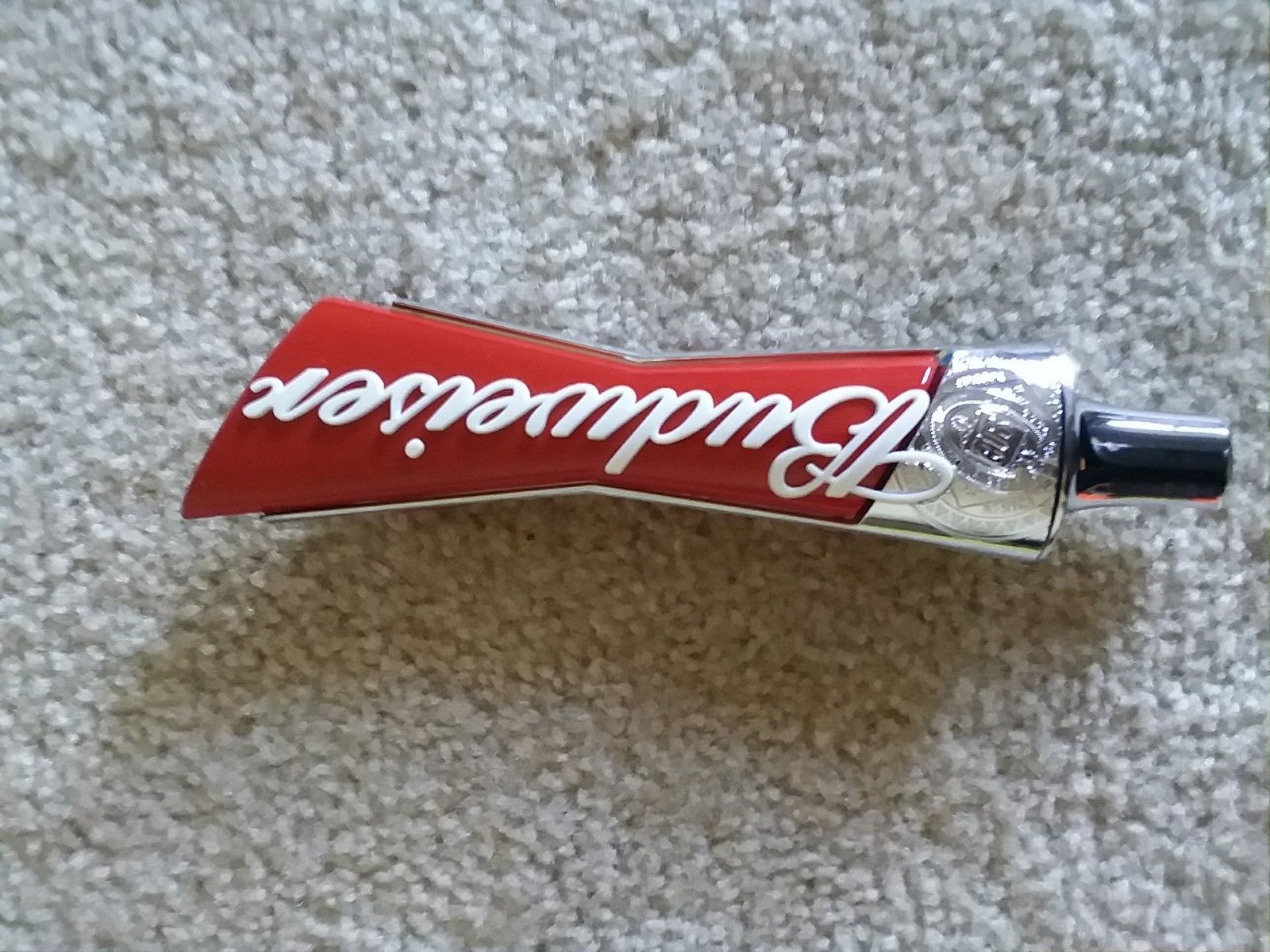 Title (ebay affiliate link): NIB BUDWEISER KING OF BEER Big Red TROPHY USA beer tap handle LIMITED RARE TALL
