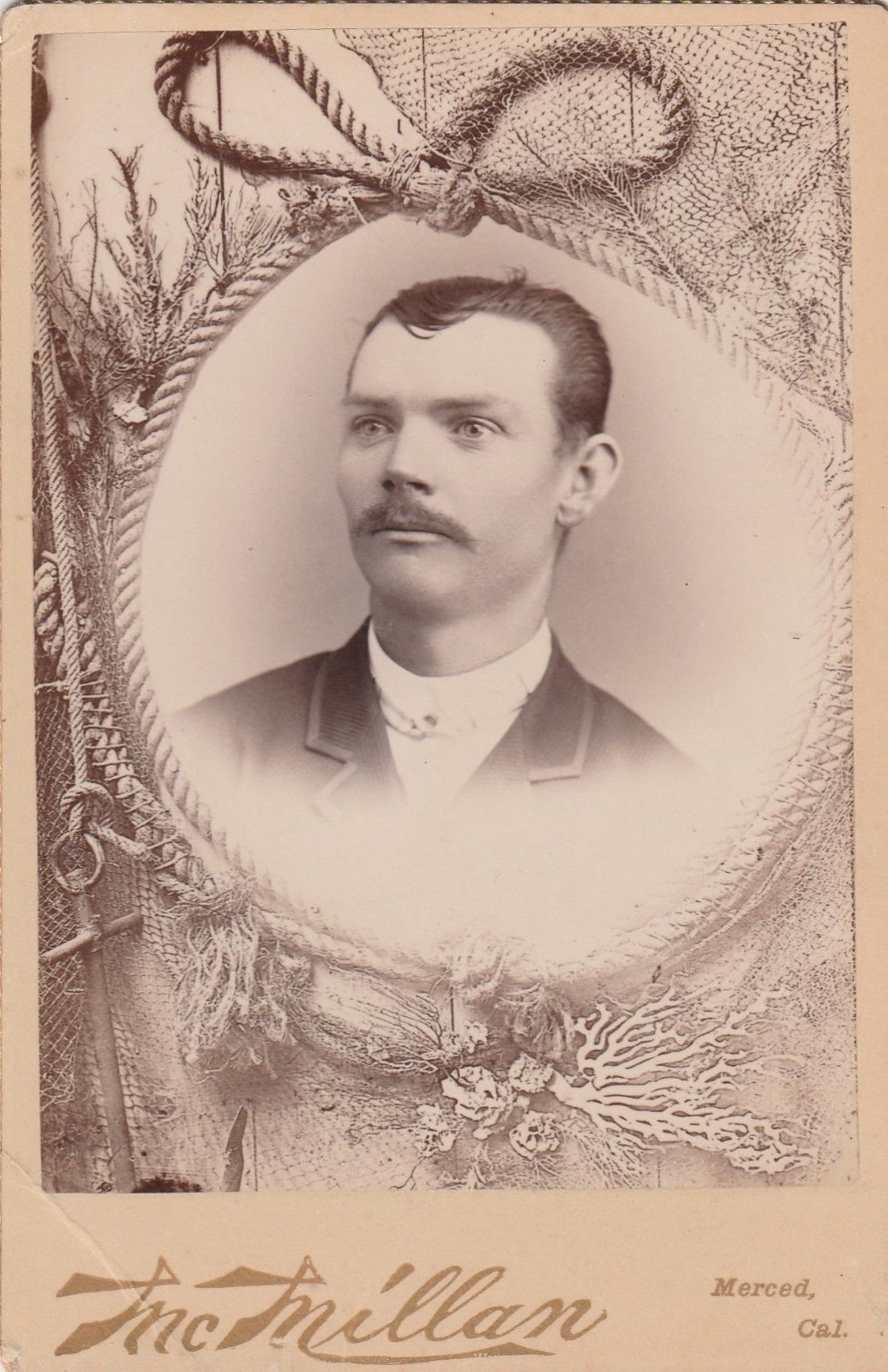 CABINET CARD MEMORIAL FRAMING ROPE & ANCHOR,GENTLEMAN MUSTACHE,MERCED CA,1895