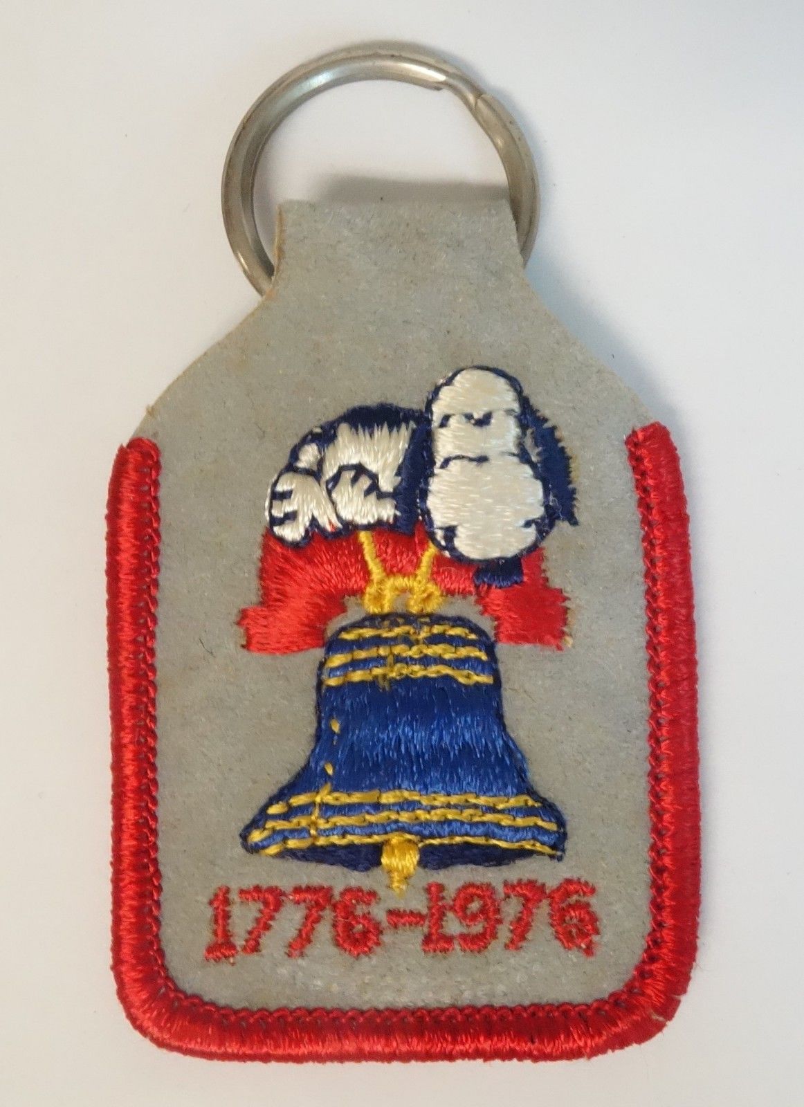VINTAGE KEYCHAIN 1970''S PEANUTS SNOOPY ON LIBERTY BELL EMBROIDERED BICENTENNIAL