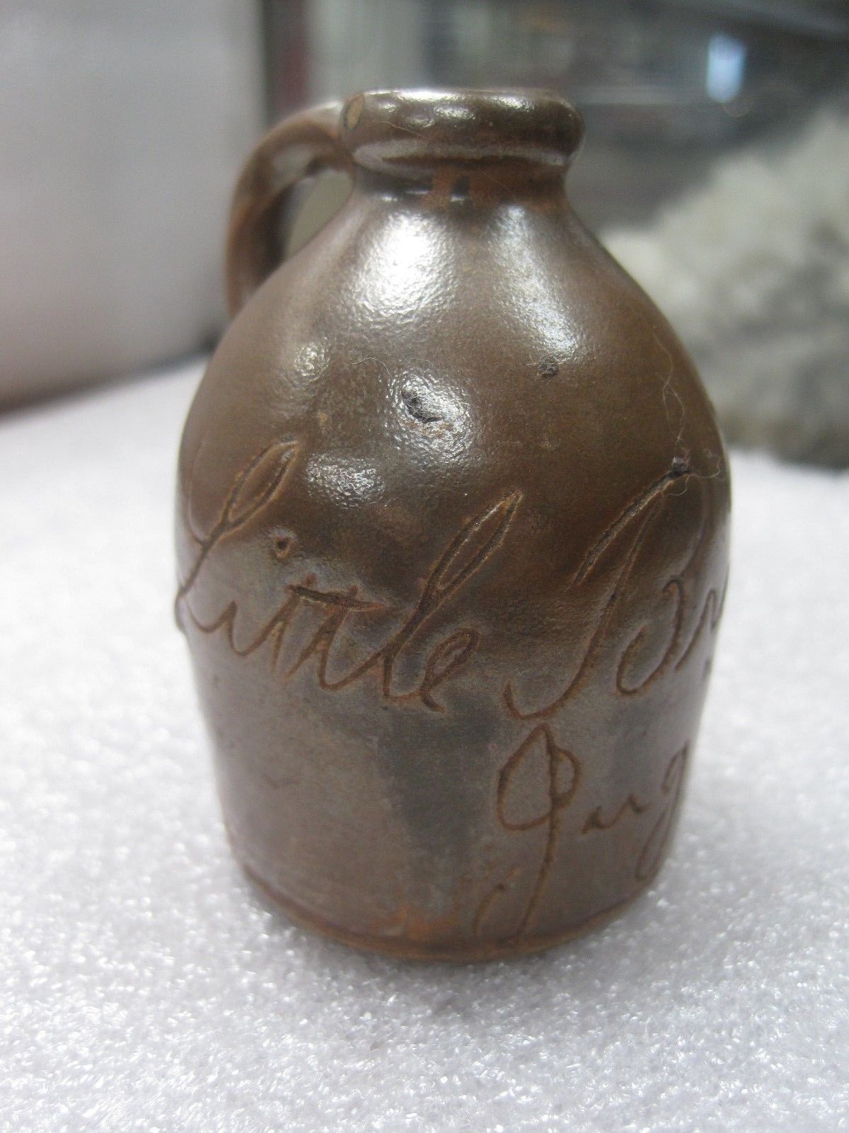 Title (ebay affiliate link): Antique Miniature Whiskey Little-Brown-Jug Scratch Decorated Glazed Stoneware