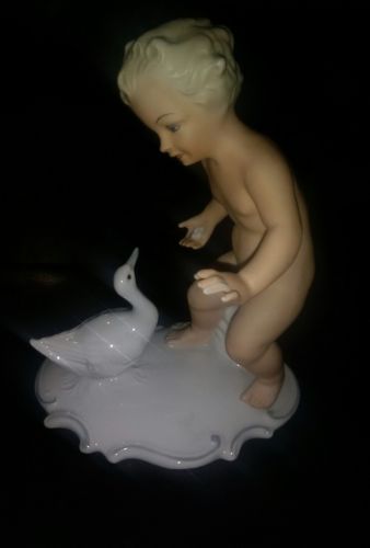 schaubach kunst porcelain cherub figurine with duck vintage rare antique Germany