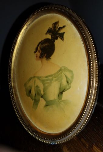 Title (ebay affiliate link): Antique Brass Oval Picture Frame w/Gibson Girl Print-Convex Celluloid-Wire Easel
