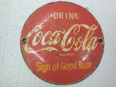 Title (ebay affiliate link): PORCELAIN SIGN DRINK COCA-COLA SIZE- 6" INCH DIA APPROX