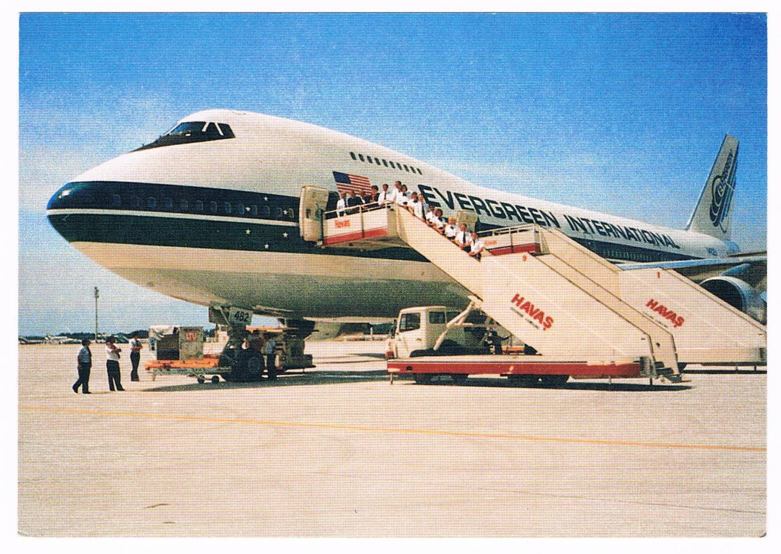Postcard Evergreen International airline issue Boeing 747 aviation airport