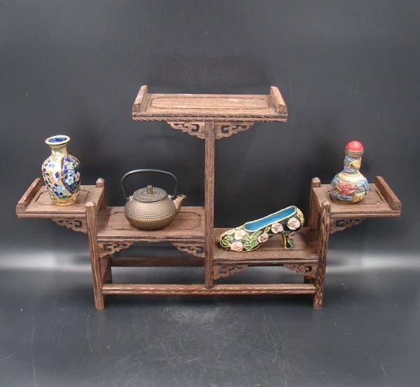 Title (ebay affiliate link): Rare solid hardwood curio shelves Stand Shelf Handmade Carving Deco Art