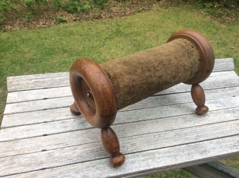Antique Wood Frame ROUND VELVET-LIKE MATERIAL Foot Stool