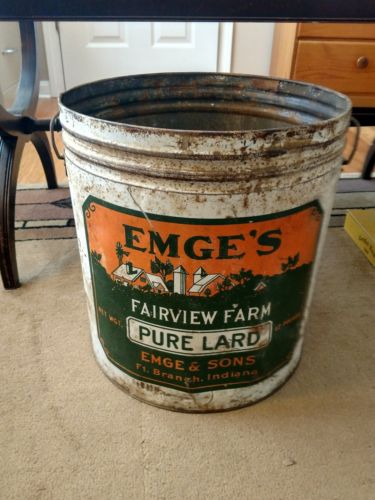 Vintage Lard Can -Emge / Fairview Farm ,Ft Branch Indiana -47 Lb.-Depression Era