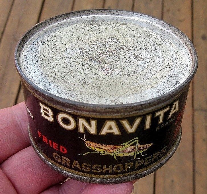 VINTAGE FULL SEALED BONAVITA FRIED GRASSHOPPERS TIN