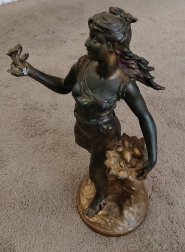 Title (ebay affiliate link): Antique Spelter 15" Clock Statue Patinated Bronze Paint Girl w Basket for repair