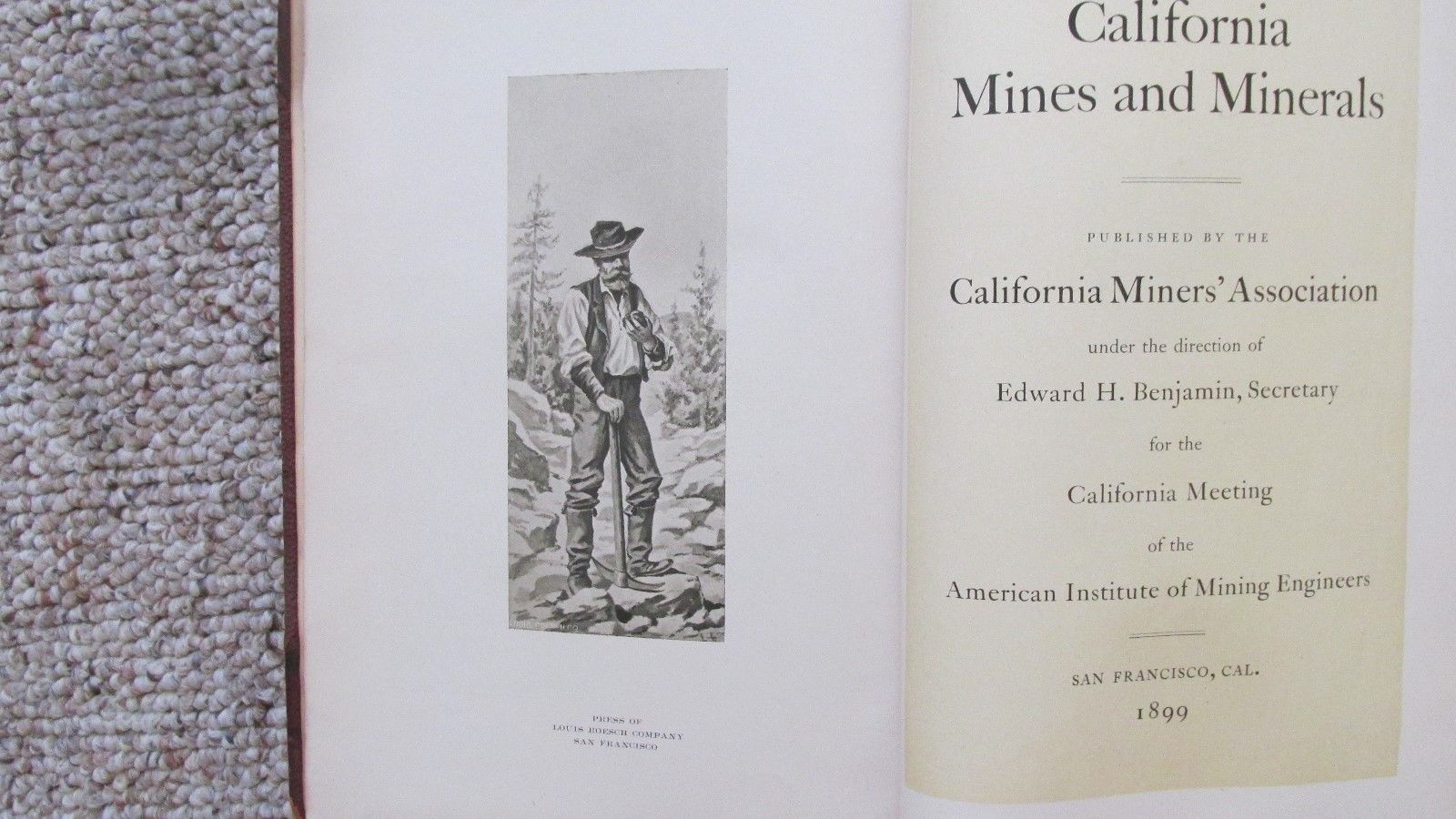 Title (ebay affiliate link): 1899 California MInes & Minerals Hard Cover Book-California MIners'' Association