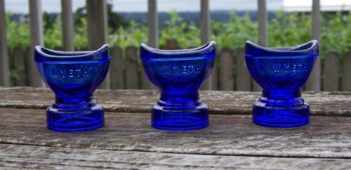 Title (ebay affiliate link): Lot of 3 Vintage WYETH Cobalt Blue Glass Eye Wash Cups / Caps