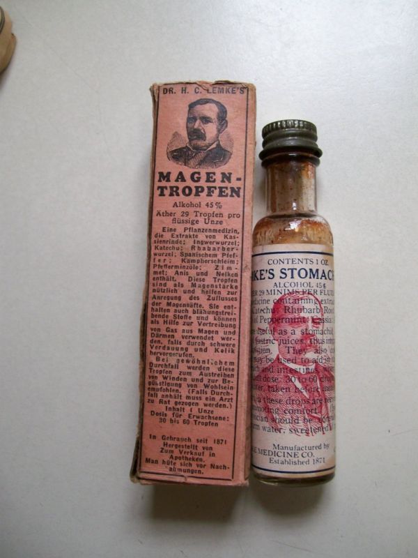 DR. Lemke''s Stomachic Drops, Metal Cap, Box, Instructions, Made Chicago Ill.