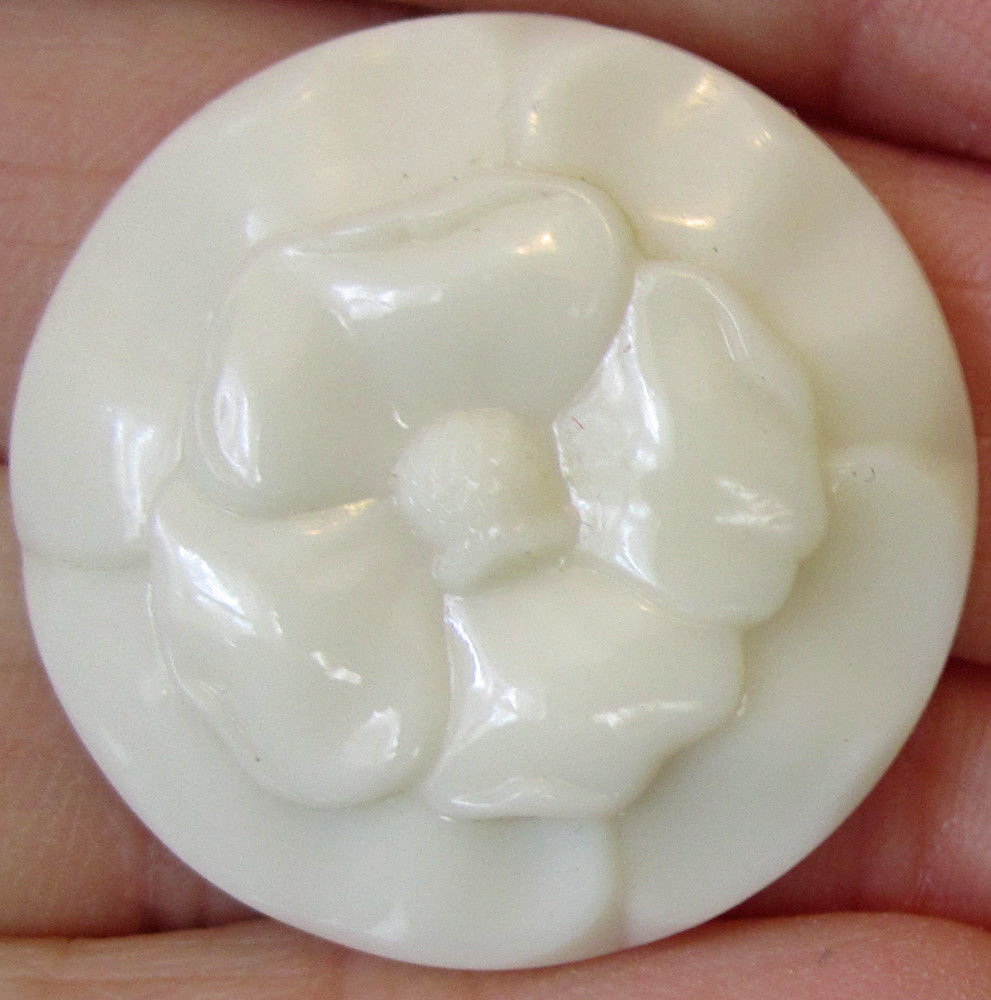 Antique Button,White Milk Glass,Floral,XL,1 1/8",Vintage,Sewing,Flower,Crafts