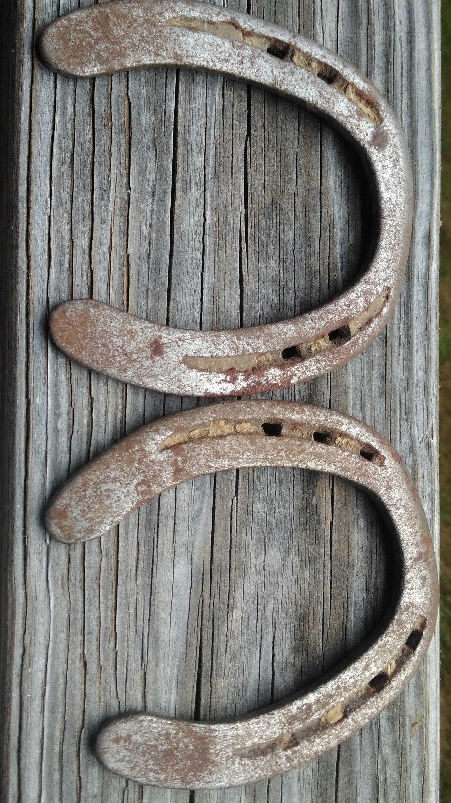 Title (ebay affiliate link): 2 Lot Antique Vintage Real Horse Shoes Primitive Farm Horseshoe