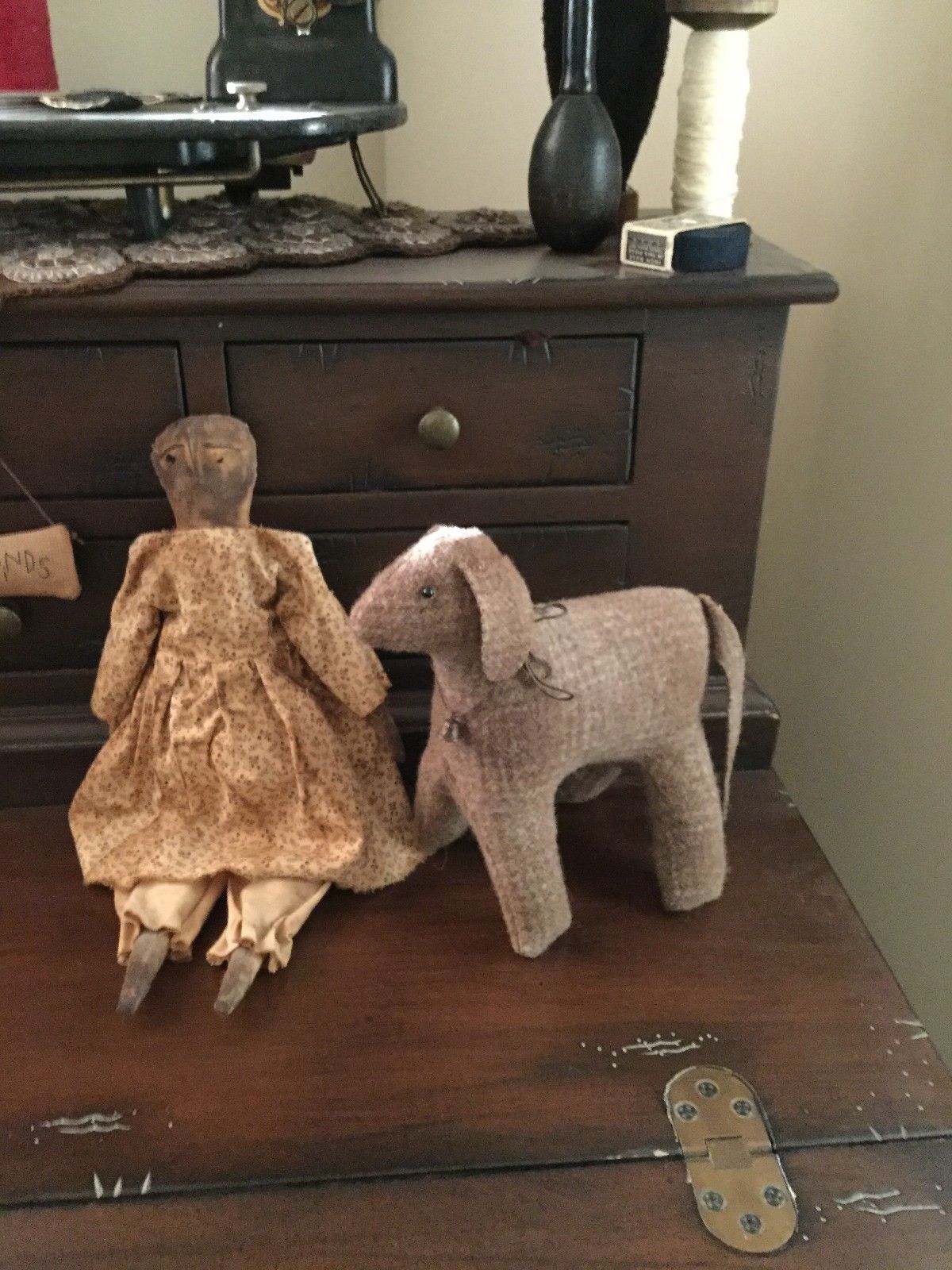 Title (ebay affiliate link): EARLY PRIMITIVE CLOTH RAG DOLL AND HER WOOL LAMB SHEEP