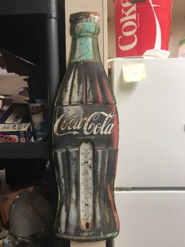 Title (ebay affiliate link): Antique Coca-Cola Thermometer Advertising Tin Shaped like a bottle