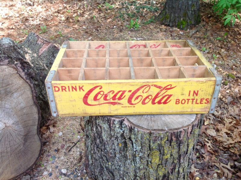 Title (ebay affiliate link): Vintage Yellow Coca Cola Wooden Crate Fargo Moorhood 24 Bottles