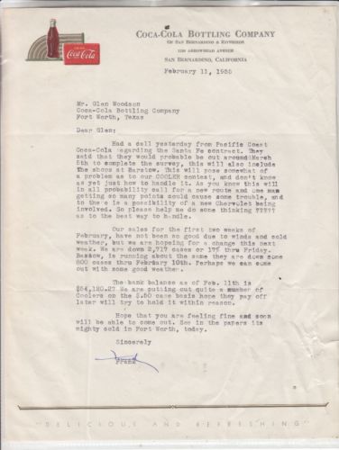 Title (ebay affiliate link): COCA-COLA BOTTLING COMPANY OF SAN BERNARDINO. .LETTERHEAD FEBRUARY 11, 1955