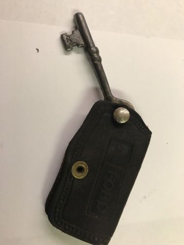 Vintage Ford Leather Key Fob With Skeleton Key